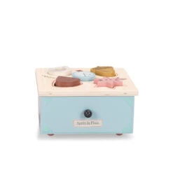 Magnifiquement illustrée du petit chat de la collection, la boite à forme Après la pluie par Moulin Roty est un très beau jouet pour suivre bébé dans toutes ses expériences.