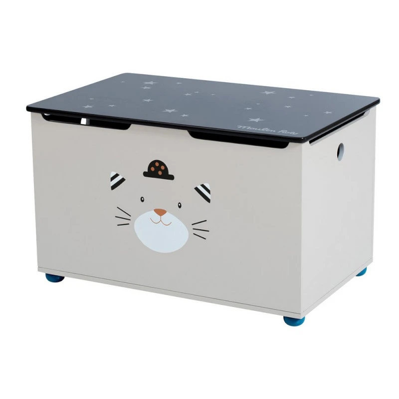 Le coffre à jouets assorti au thème Les Moustaches par Moulin Roty permet de ranger tous les jouets de bébé afin de garder sa chambre bien rangée ! Ce coffre en bois Les Moustaches par Moulin Roty offre une grande contenance et est décoré sur la façade des illustrations du thème Les Moustaches: un adorable petit chat avec son beau chapeau melon ! Grace à son vérin de sécurité, spécialement conçu pour accompagner le mouvement du couvercle, bébé ne pourra plus se coincer les doigts ! Accessoire incontournable de la chambre de bébé, n’oubliez pas de l’ajouter à votre liste de naissance !