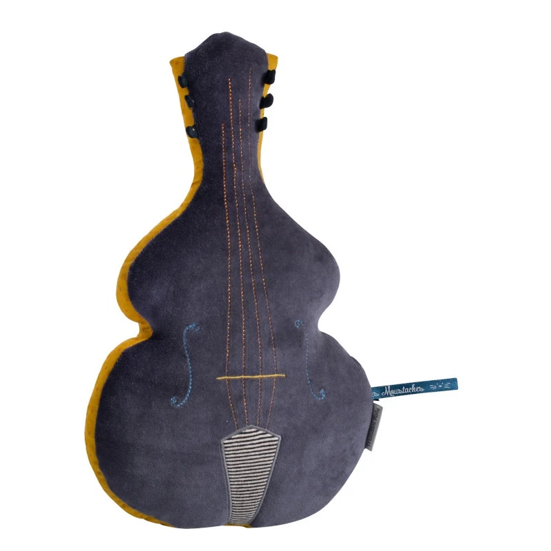 Ce joli coussin gris et jaune prenant la forme d’une contrebasse assortie à la collection Les Moustaches par Moulin Roty décorera à merveille la chambre de votre tout petit !