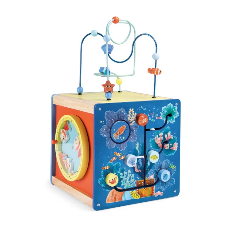 Chaque panneau comporte une activitĂ© ludique diffĂ©rente. Il contient un labyrinthe coulissant, un jeu Ă formes, des engrenages, un boulier, etc… Grâce Ă ses 5 faces d’activitĂ©s, bĂ©bĂ© peut faire de nombreuses dĂ©couvertes et manipulations.