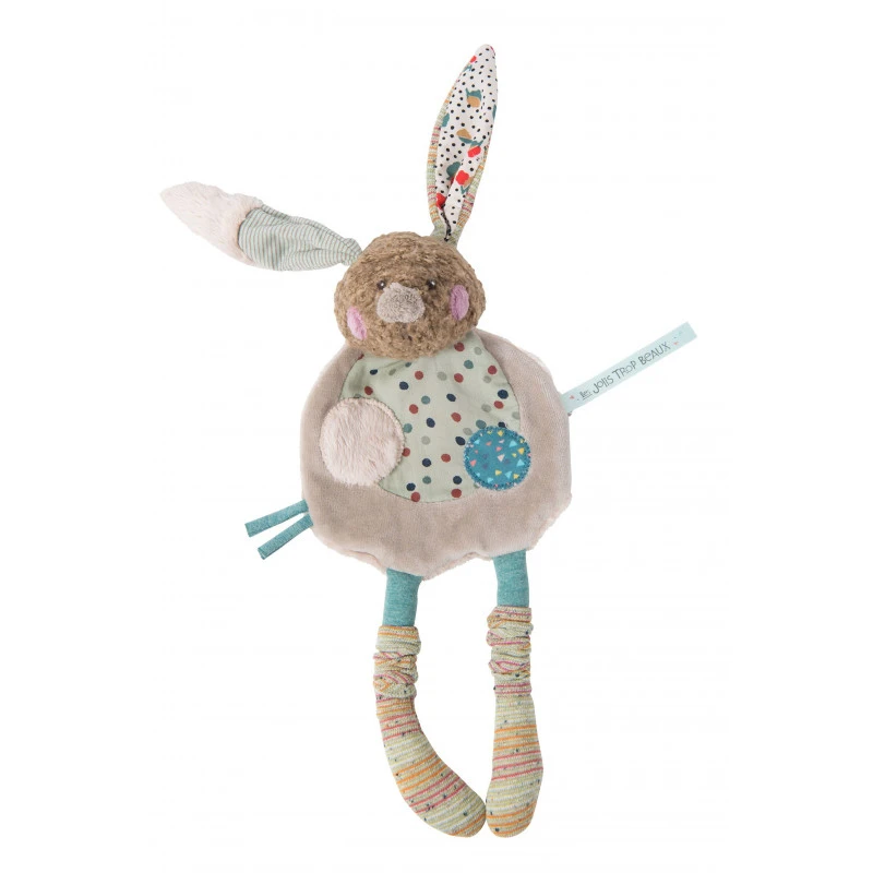 Ce beau doudou prenant la forme d’un joli petit lapin assorti à la collection Les Jolis Trop Beaux par Moulin Roty deviendra rapidement le compagnon de bébé. Il l’accompagnera tout au long de la journée et sera là au moment du coucher pour le réconforter et le câliner.