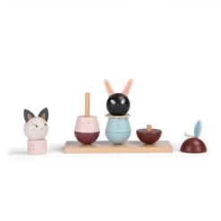 L’empilable multi-activités Après la pluie Moulin Roty est un jouet composé d’un socle et de 10 pièces en bois. L’objectif est de reconstituer les doux esprits d’Après la pluie ou bien de les mélanger pour en inventer d’autres combinaisons.