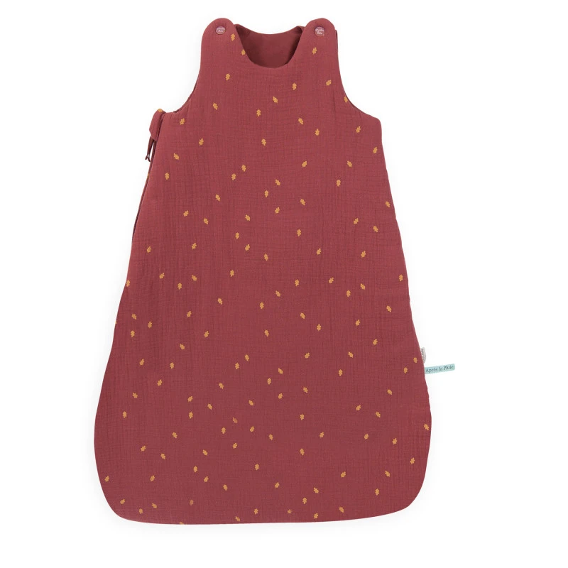La gigoteuse 2ème âge Terracotta Moulin Roty Après la pluie est réalisée en lange de coton, dans une chaleureuse couleur rouge terre, parsemée de délicates feuilles de chêne ocre. Sa doublure est également composée à 100 % de coton pour laisser respirer la peau de bébé. Douce et chaude, elle offre à votre bout de chou de belles nuits de sommeil, sans risque de se découvrir, en hiver comme en demi-saisons.