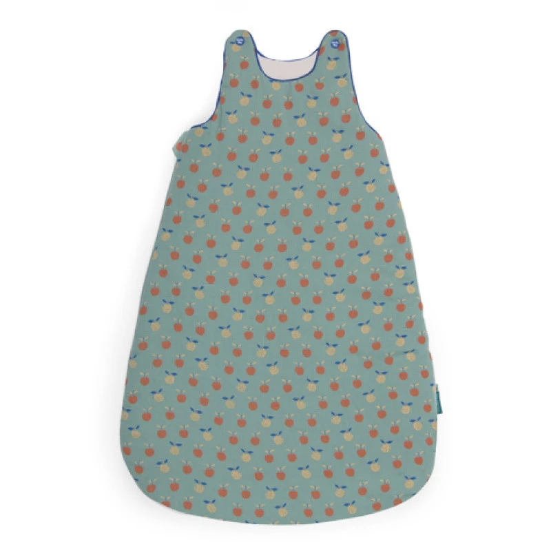 La gigoteuse 2e âge verte à motifs Moulin Roty Pomme des bois est réalisée en coton, dans une apaisante couleur verte et décorée d’un adorable imprimé avec de petites pommes.