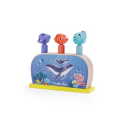 Le pop-up Les aventures de Paulie Moulin Roty réunit 3 personnages de la collection dans une boite en bois, joliment illustrée : il suffit de placer les 3 personnages dans leur logement, et appuyer sur leur tête pour les faire sauter hors de leur emplacement… Vraiment trop drôle !