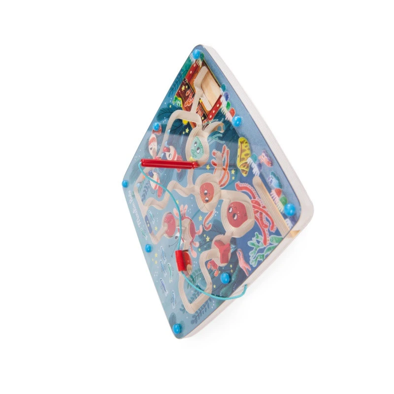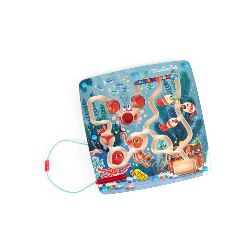 Le labyrinthe magnĂ©tique Les aventures de Paulie de Moulin Roty est un jeu d’adresse d’un genre nouveau, Ă proposer Ă votre enfant dès 18 mois. Ă€ l’aide de son stylet aimantĂ©, il doit dĂ©placer les billes jusqu’à les conduire dans les bonnes cases en faisant tourner les Ă©lĂ©ments magnĂ©tiques pour trouver ton chemin. Ce labyrinthe est idĂ©al pour apprendre Ă compter et dĂ©couvrir les couleurs tout en s’amusant sous l’ocĂ©an.