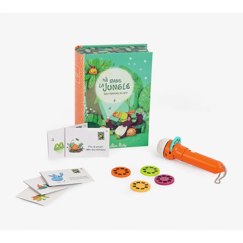 Plus grand, votre bout de chou fera appel à sa propre imagination et utilisera seul sa lampe à histoire coffret livre Dans la jungle Moulin Roty, pour créer ses propres histoires. Vous risquez d’être surpris !