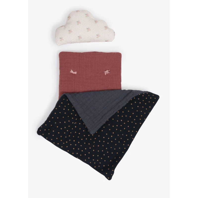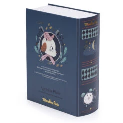 Offrez à votre enfant dès 2 ans ce splendide livre Bonne nuit Moulin Roty Après la pluie. Dans le très beau livre-coffret illustré, la peluche Réglisse, le mouton en fourrure et tissu chambray, est blottie sous sa couverture à pois, entre son matelas en lange et son coussin nuage. Elle tient dans ses bras un mini-livre pour raconter plein de jolies histoires avant de s’endormir.
