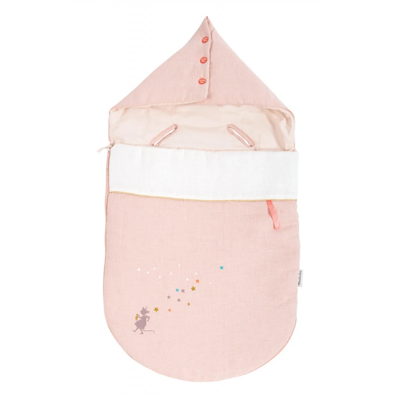 Idéal pour garder bébé au chaud lors de vos balades, le nid d’ange « Il était une fois » est un incontournable des listes de naissances. Ce modèle fille du thème Il Etait Une Fois est en lin rose poudré illustré d’une petite souris sous les étoiles. Pratique, il est adapté pour les sangles des sièges auto et des poussettes. Bébé pourra donc rester au chaud, en toute sécurité : impossible de se découvrir ou de tomber ! Toujours utile et plus sécurisant qu’une couverture, c’est une idée de cadeau parfaite pour de jeunes ou futurs parents. Son design sobre et ravissant s’accordera très bien à tout type de poussette, landau, coque ou siège auto.