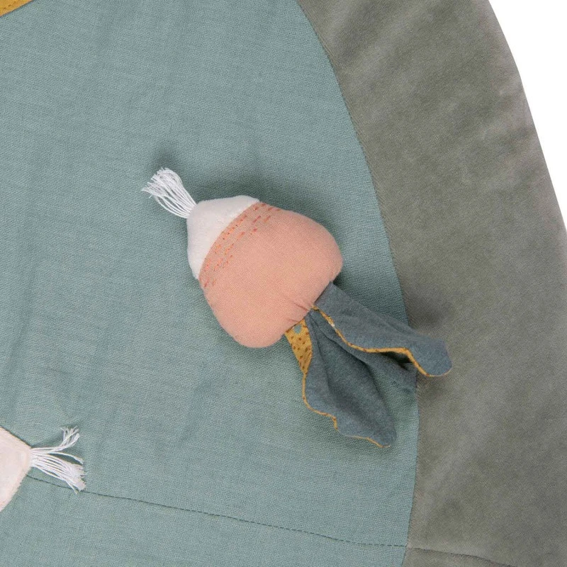 Bien molletonné, le tapis d’éveil Trois Petits Lapins de Moulin Roty regorge de multiples activités à découvrir : Ça fait scritch, dilling et pouët au milieu des carottes et des petits radis… il contient également 2 jeux de cache-cache.